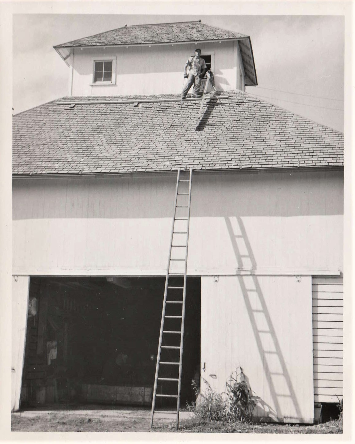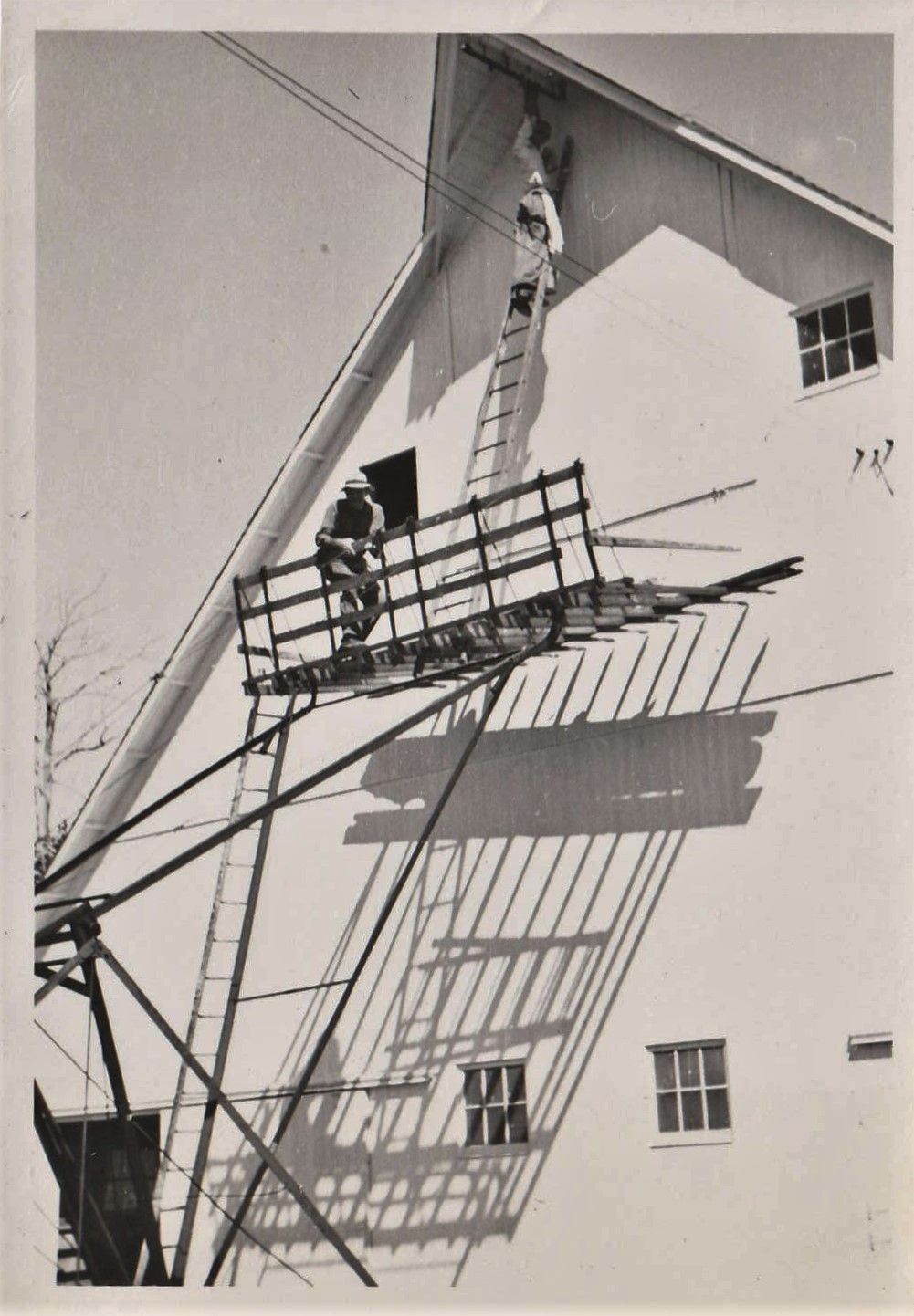 Panting the Barn. Russell up on the ladder. Who is on the scaffolding?